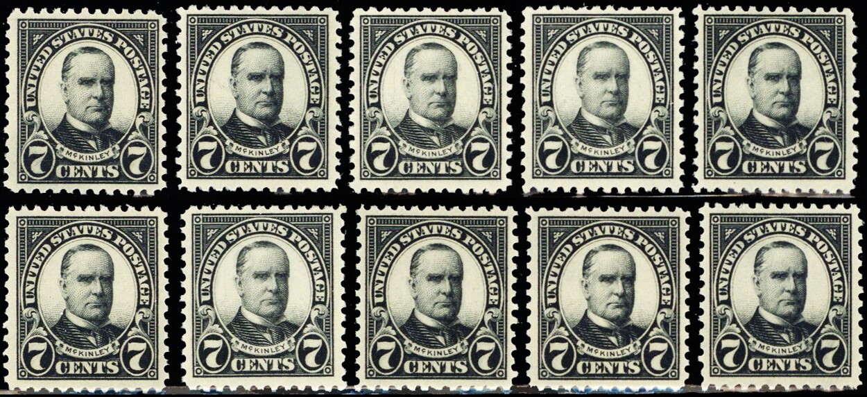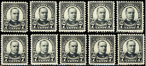 559, Mint NH 7¢ F-VF Lot of 10 Fresh Stamps CV $155.50 - Stuart Katz