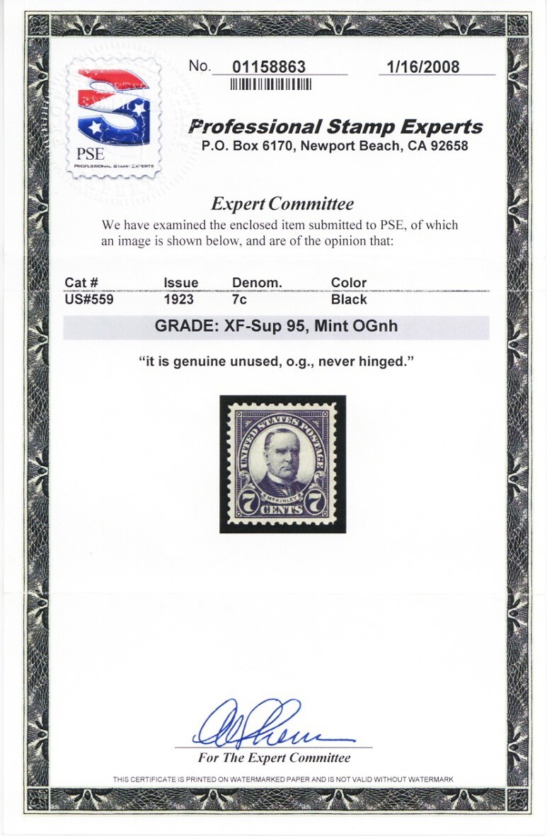 559, Mint NH XF/Superb 7¢ - With PSE Graded 95 Certificate - Stuart Katz