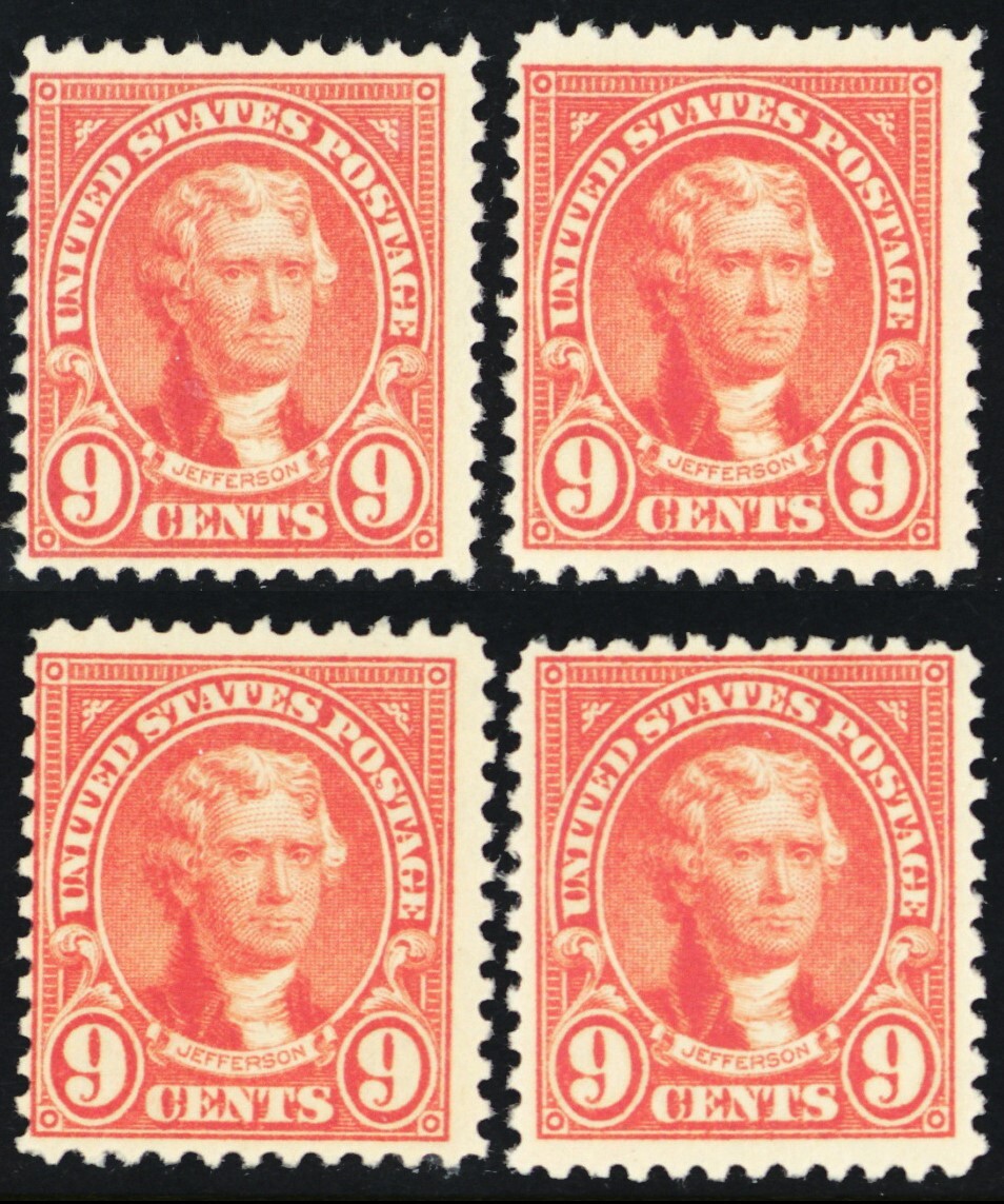 561, Mint Fine NH 9¢ Four PO Fresh Stamps CV $100. - Stuart Katz