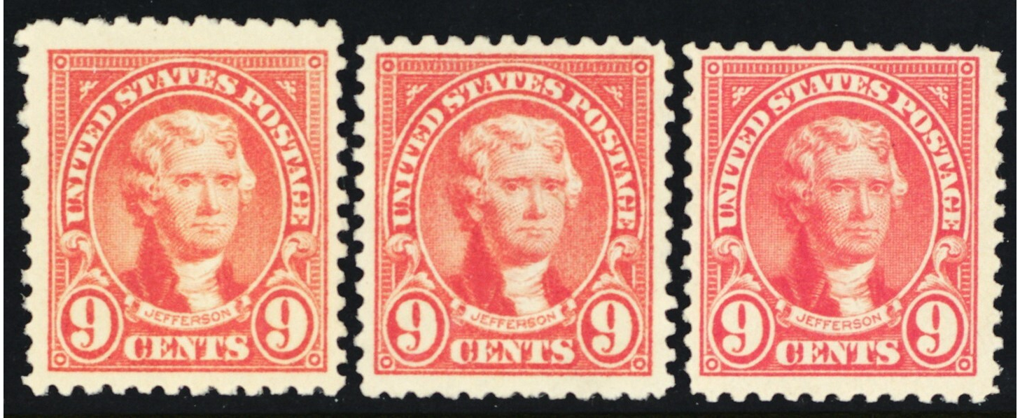 561, Mint FVF LH (One HR) 9¢ Three Stamps CV $33. - Stuart Katz