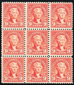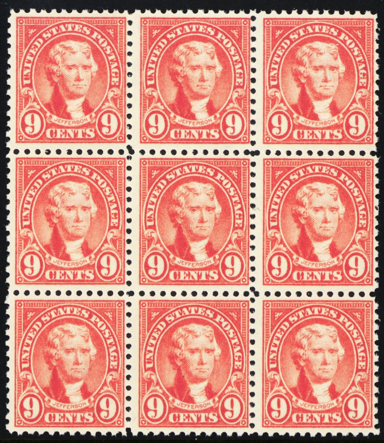 561, Mint NH 9¢ Block of Nine Stamps CV $225. - Stuart Katz