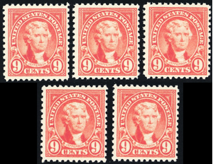 561, Mint VF NH 9¢ GROUP OF FIVE CV $125.00 * Stuart Katz