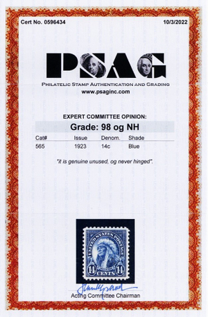 565, Mint Superb NH 14¢ - With Graded 98 PSAG Certificate - Stuart Katz