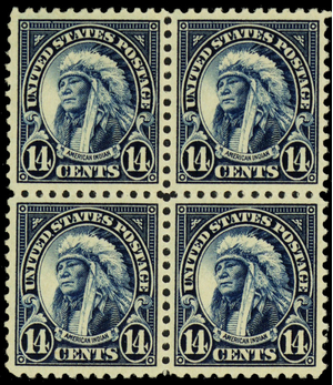 565, Mint XF NH 14¢ Block of Four American Indian - Stuart Katz