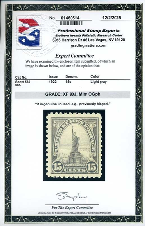 566, 15¢ Liberty, PSE Graded XF 90J Mint PH Certificate, SMQ $35