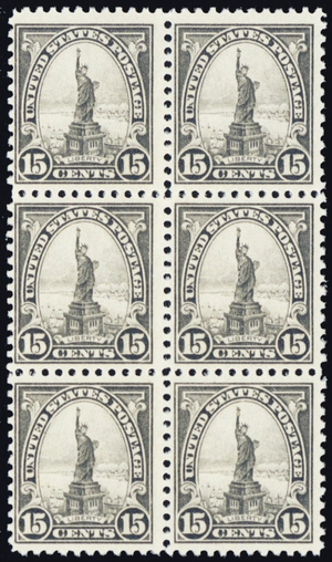 566, Mint 15¢ VF NH Liberty Block of Six Stamps Cat $210.00 - Stuart Katz