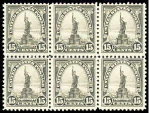 566, Mint NH F/VF 15¢ Statue of Liberty Block of Six - Stuart Katz