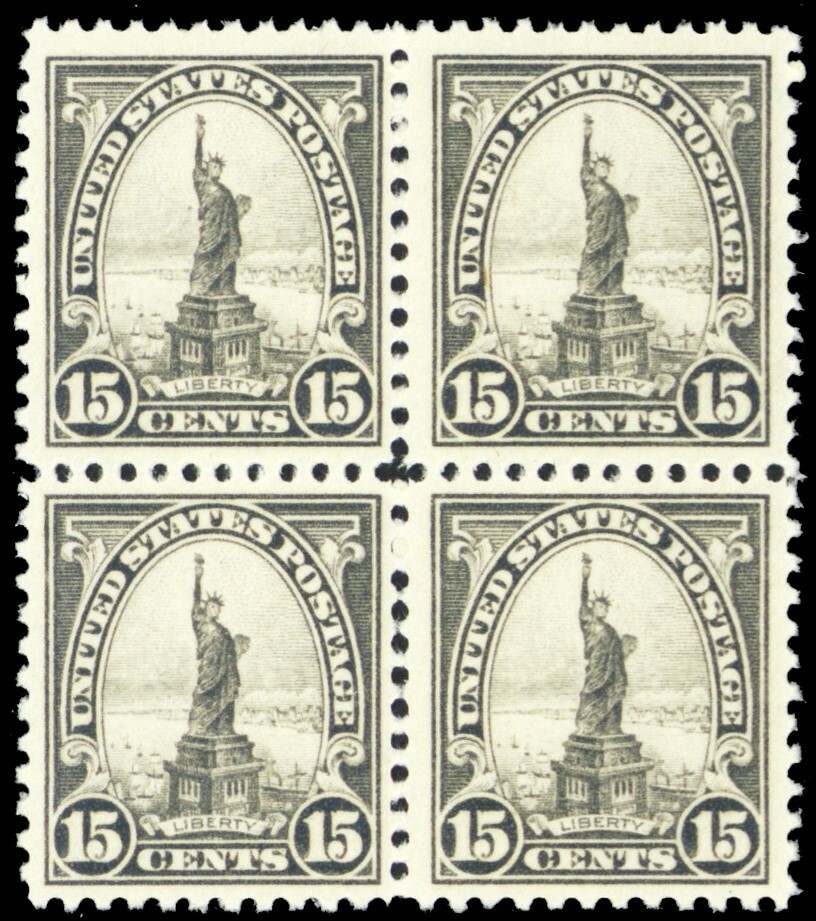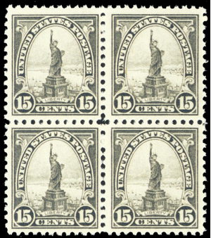 566, Mint NH VF 15¢ Statue of Liberty Block of Four -- Stuart Katz