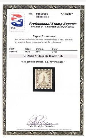 566, Mint XF/Superb NH 15¢ - With Graded 95 PSE Certificate - Stuart Katz