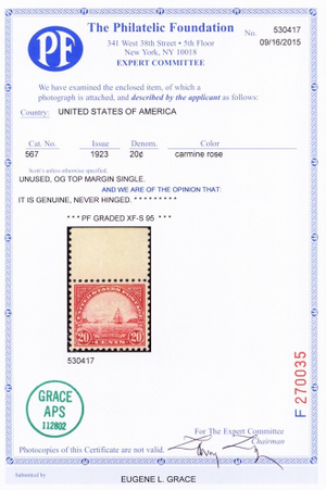 567, Mint NH XF/Superb 20¢ - PFC Graded 95 * Stuart Katz