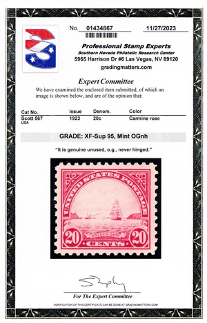 567, Mint XF/Superb NH 20¢ - With PSE Graded 95 Certificate - Stuart Katz