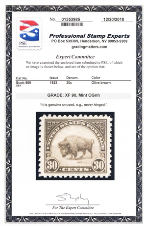 569, Mint XF NH 30¢ - With Graded 90 PSE Certificate - Stuart Katz
