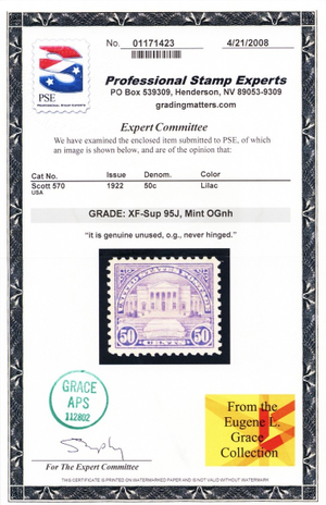 570, Mint XF/Superb NH 50¢ With Graded 95J JUMBO PSE Certificate * Stuart Katz