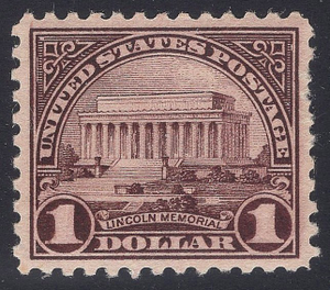 | #571 F-VF MNH OG $1 LINCOLN MEMORIAL STAMP-PERF 11 SERIES Scott #571 F-VF MNH OG Margin copy single of the Perf 11 flat plate printing of the $1 Lincoln Memorial in Washington DC issue. This is a beauty of a stamp and always popular. Fresh stamp with bottom margin selvage.