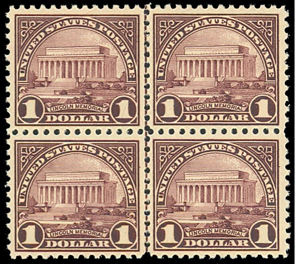 571, Mint $1 VF NH Block of Four Stamps Lincoln Memorial Cat $320 - Stuart Katz