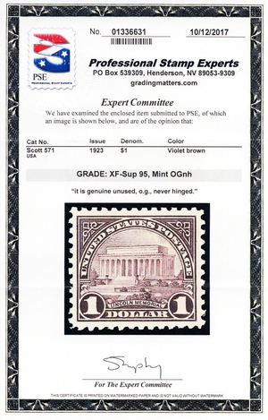 571, Mint XF/Superb NH $1 - With Graded 95 PSE Certificate - Stuart Katz