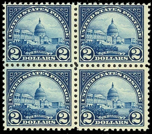 572, Mint $2 Capital - Block of four - VF OG NH Cat $600.00 - Stuart Katz