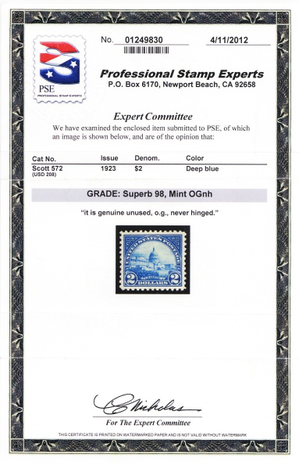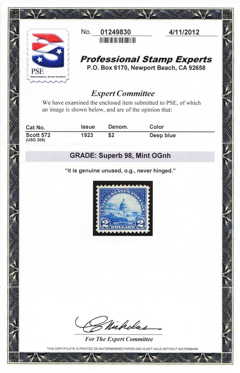 572, Mint Superb NH $2 - With Graded 98 PSE Certificate - Stuart Katz