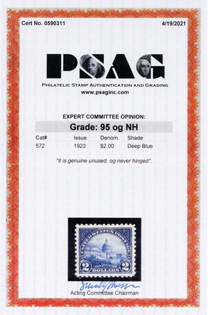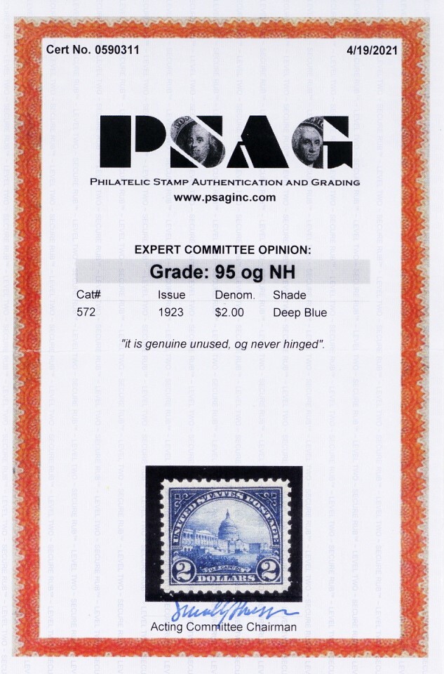 572, Mint XF/Superb NH $2 - With Graded 95 PSAG Certificate - Stuart Katz