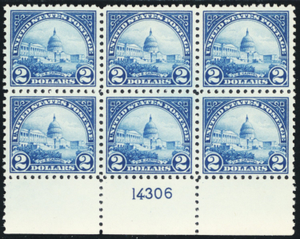572, Miont VF NH $2 Capital Plate Block of Six SCV $1000 - Stuart Katz