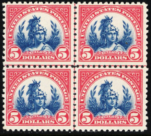 573, Mint VF NH $5 Center Line Block of Four - Stuart Katz