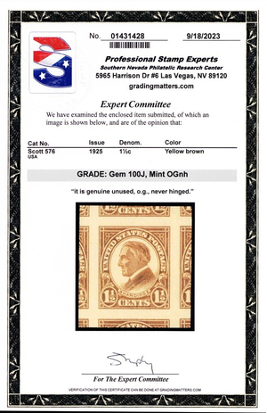 576, Mint Superb GEM NH 1-1/2¢ - With Graded 100J PSE Certificate - Stuart Katz