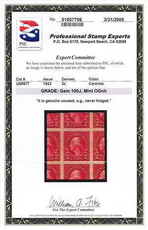 Due to the high cost of obtaining certificates we will only refund the cost of the stamp and not the cost of the certificate for stamps that sell for less than $250 that come back with a negative certificate. Stamps that sell for above $250 will receive a full refund for both the price of the stamp and cost of the certificate if it should come back not as described. For U.S. stamps only certificates from either APS, PSE or from the Philatelic Foundation are accepted, however "graded" certificates or "encased" items are not accepted.