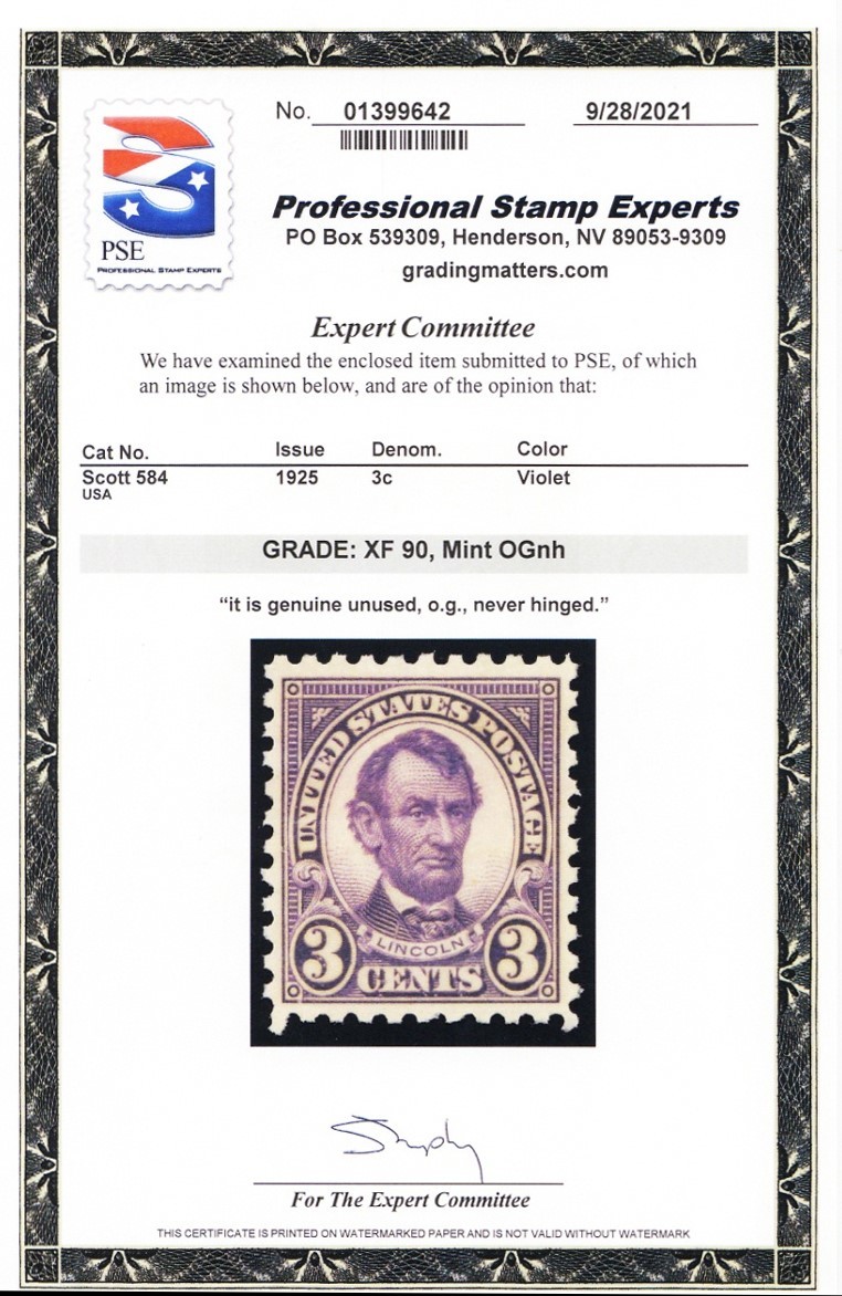 584, Mint XF NH 3¢ - With Graded 90 PSE Certificate - Stuart Katz