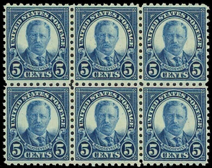 586, Mint 5c Block of six - VF/XF NH Very fresh! Cat $225.00+