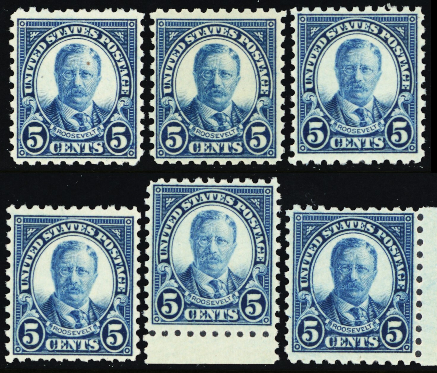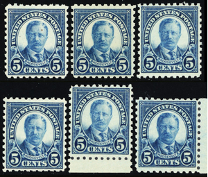 586, Mint F-VF 5¢ NH (1 with inclusion) SIX RESH Stamps CV $225. * Stuart Katz