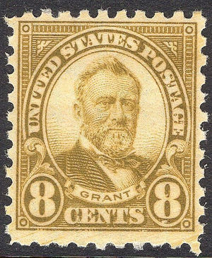 Scott #589 VF MNH OG single of the Perf 10 8-cent U S Grant rotary press issue. This is a beauty of a stamp and the perf 10's are super tough to find with nice centering. Fresh with even margins.