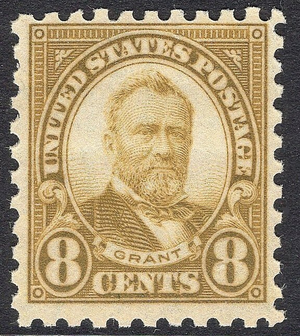 Scott #589 VF MNH OG single of the Perf 10 8-cent U S Grant rotary press issue. This is a beauty of a stamp and the perf 10's are super tough to find with nice centering. Fresh with even margins.