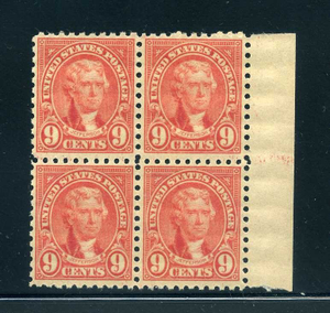 590, 9¢ Jefferson, block of four, Mint NH, F/VF, Scott $50