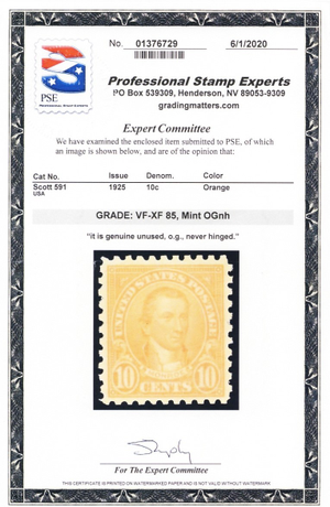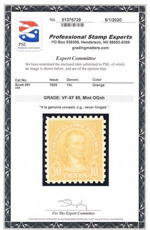 591, Mint VF/XF NH 10¢ - With PSE Graded 85 Certificate * Stuart Katz