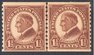 Beautiful Superb MNH OG Scott #598 1 1/2-cent Warren G Harding horizontal coil issue. Beautiful LINE PAIR with great gum. A real nice addition to your collection
