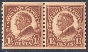 Beautiful Superb MNH OG Scott #598 1 1/2-cent Warren G Harding horizontal coil issue. Beautiful PAIR with great gum. A real nice addition to your collection