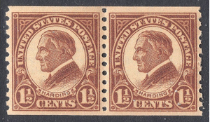 Beautiful XF MNH OG Scott #598 1 1/2-cent Warren G Harding horizontal coil issue. Beautiful PAIR with great gum. A real nice addition to your collection