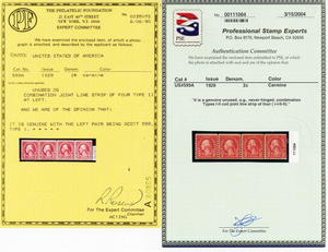 Due to the high cost of obtaining certificates we will only refund the cost of the stamp and not the cost of the certificate for stamps that sell for less than $250 that come back with a negative certificate. Stamps that sell for above $250 will receive a full refund for both the price of the stamp and cost of the certificate if it should come back not as described. For U.S. stamps only certificates from either APS, PSE or from the Philatelic Foundation are accepted, however "graded" certificates or "encased" items are not accepted.