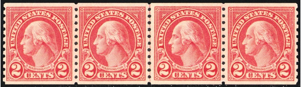 599A, Mint VF+ NH Coil Line Strip of Four With PFC Certificate - Stuart Katz