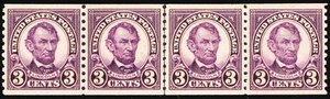 600, Mint Superb NH 3¢ Coil Line Strip of Four * Stuart Katz