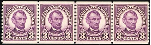 600, Mint XF NH 3¢ Coil Line Strip of Four * Stuart Katz