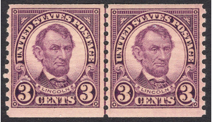 #600 VF MNH OG-3¢ ABRAHAM LINCOLN COIL LINE PAIR!! (REM #600-4)