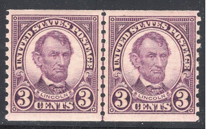 #600 XF MNH OG-3¢ ABRAHAM LINCOLN COIL LINE PAIR!! (REM #600-45)