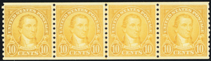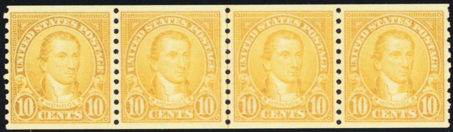 603, Mint Superb NH 10¢ Coil Line Strip of Four - Stuart Katz