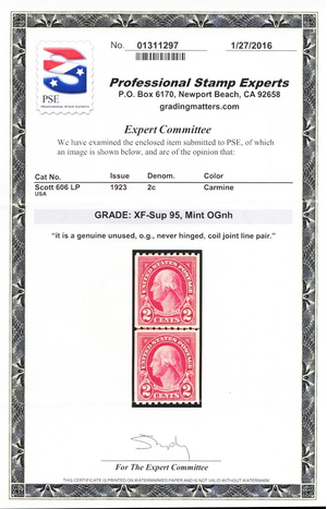 606, MNH XF/Superb 2¢ Coil Line Pair - PSE Graded 95 Certificate * Stuart Katz