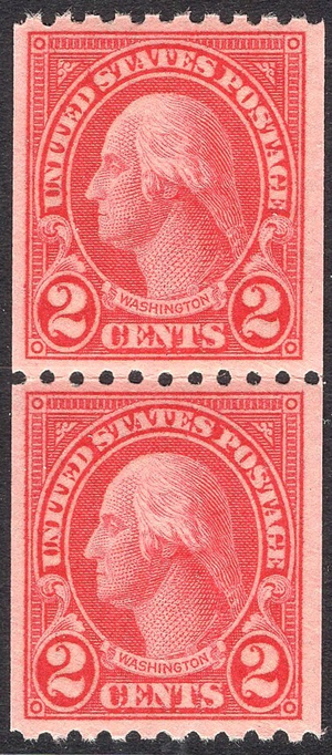 Beautiful XF MNH OG Scott #606 2-cent George Washington coil issue. Beautiful Coil Pair.