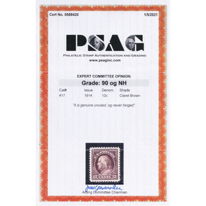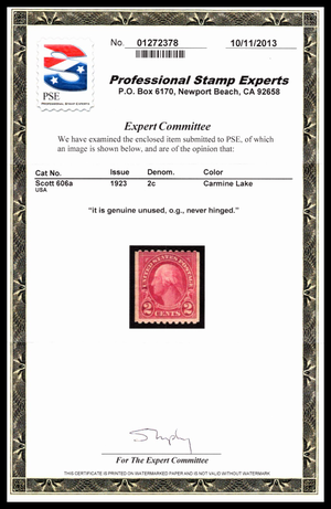 606a, 2ยข Carmine Lake Washington Coil Single, NH, PSE Certificate, Scott $140