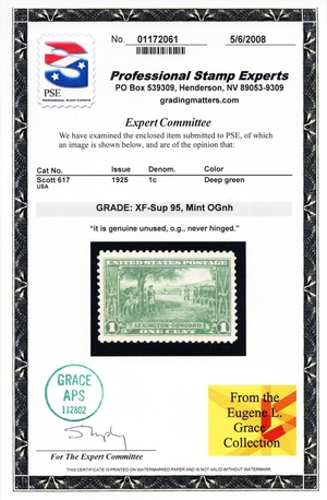 617, Mint NH 1¢ XF/Superb - PSE Graded 95 Certificate * Stuart Katz