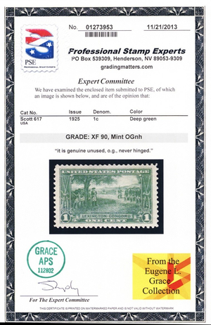 617, Mint XF NH 1¢ - PSE Certificate Graded 90 * Stuart Katz