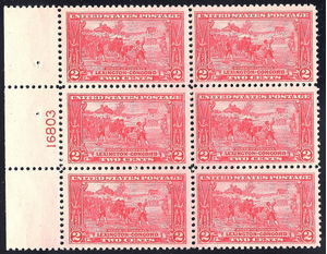 #618 VF MNH-OG-2c Lexington-Concord PLATE BLOCK OF 6